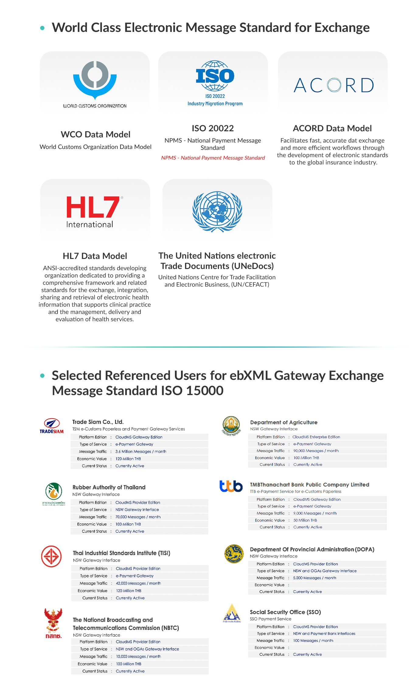CloudMS gateway edition provides the most comprehensive e-Business Messaging Service for complete B2B engagement. Reliable and scalable electronic document exchanging service based on the e-Business XML (ebXML) platform that can process up to 50,000 transactions per hour.